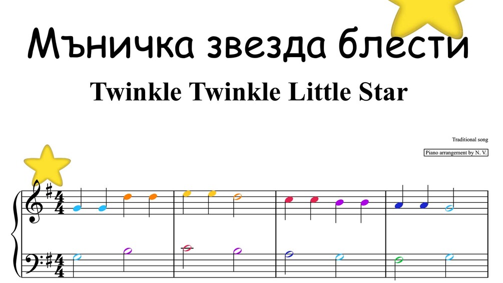 Мъничка звезда блести ⭐️ Twinkle Twinkle Little Star I Color-coded PDF Sheet Music$2.99$2.99https://schema.org/InStockusdNadezhda VladimirovaNadezhda VladimirovaVIDEO: https://youtu.be/Mf-67Gl1WoE?si=P5YeSaRpjWcVG_3gAdd to cartSize269 KBLength1 PageAdd to wishlist New wishlistShareShare on XShare on Facebook Copy linkCopy product URL